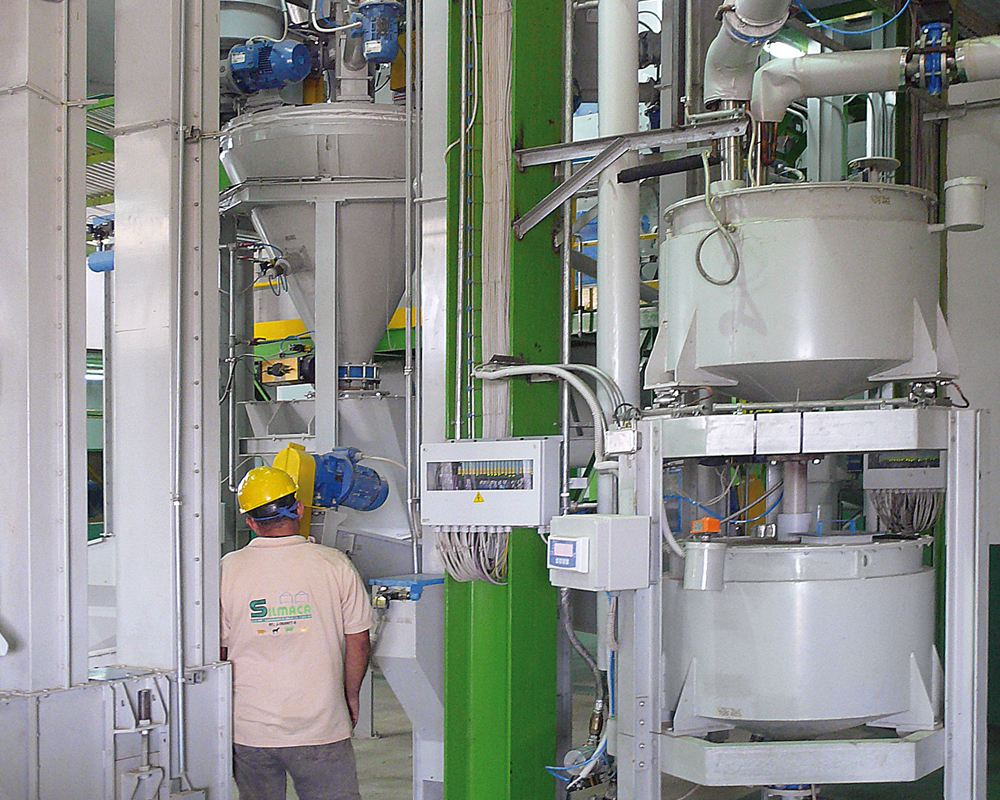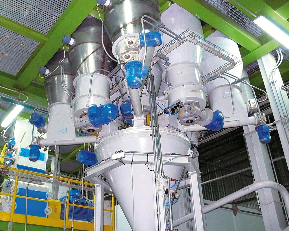 • Finished product storage with a capacity of 96 t in N°.6 silos, with N°.1 bagging line and N°.1 line for bulk outloading onto trucks.