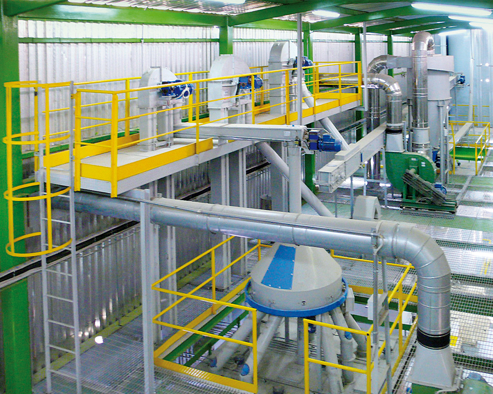 • Grinding line with hammer mill, installed power 90 Kw, with an inverter-driven electric motor.
