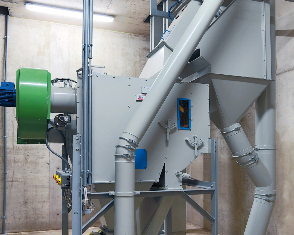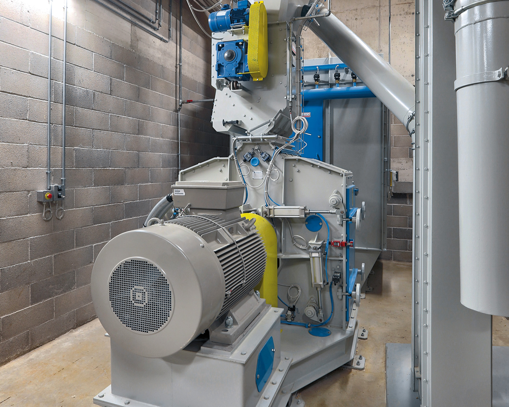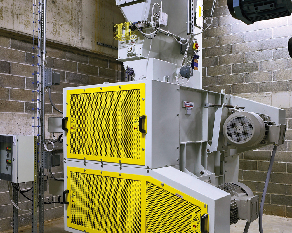 • Grinding line with hammer mill complete with sieves that can be rapidly changed while the machine is running, 160 Kw installed power, with inverter-run electric motor.