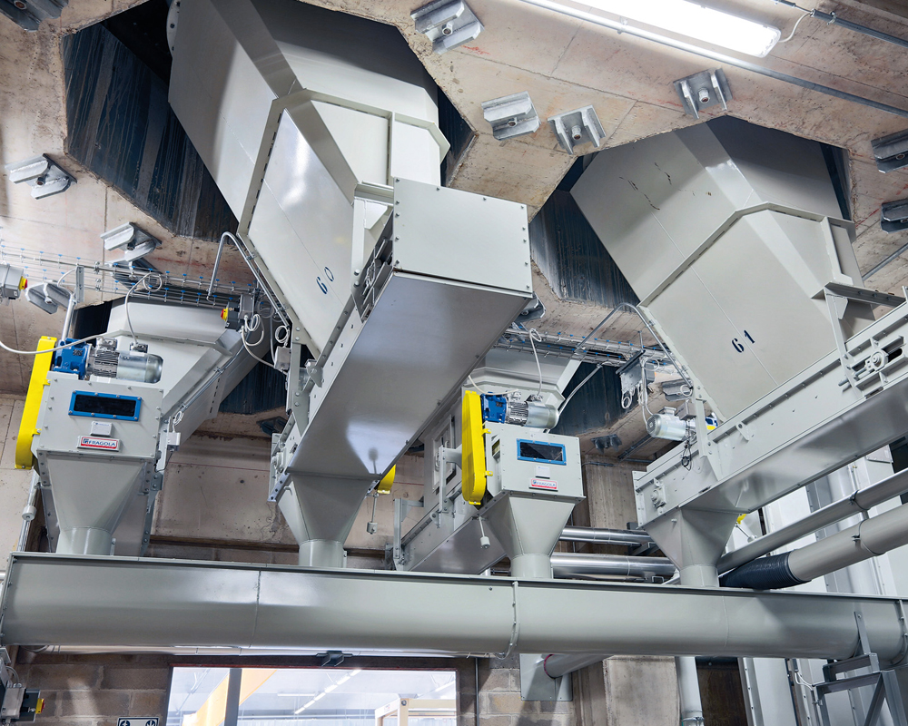 • All 24 silos can simultaneously feed the 3 bagging lines and the bulk outloading station with the possibility of screening and weighbridge.