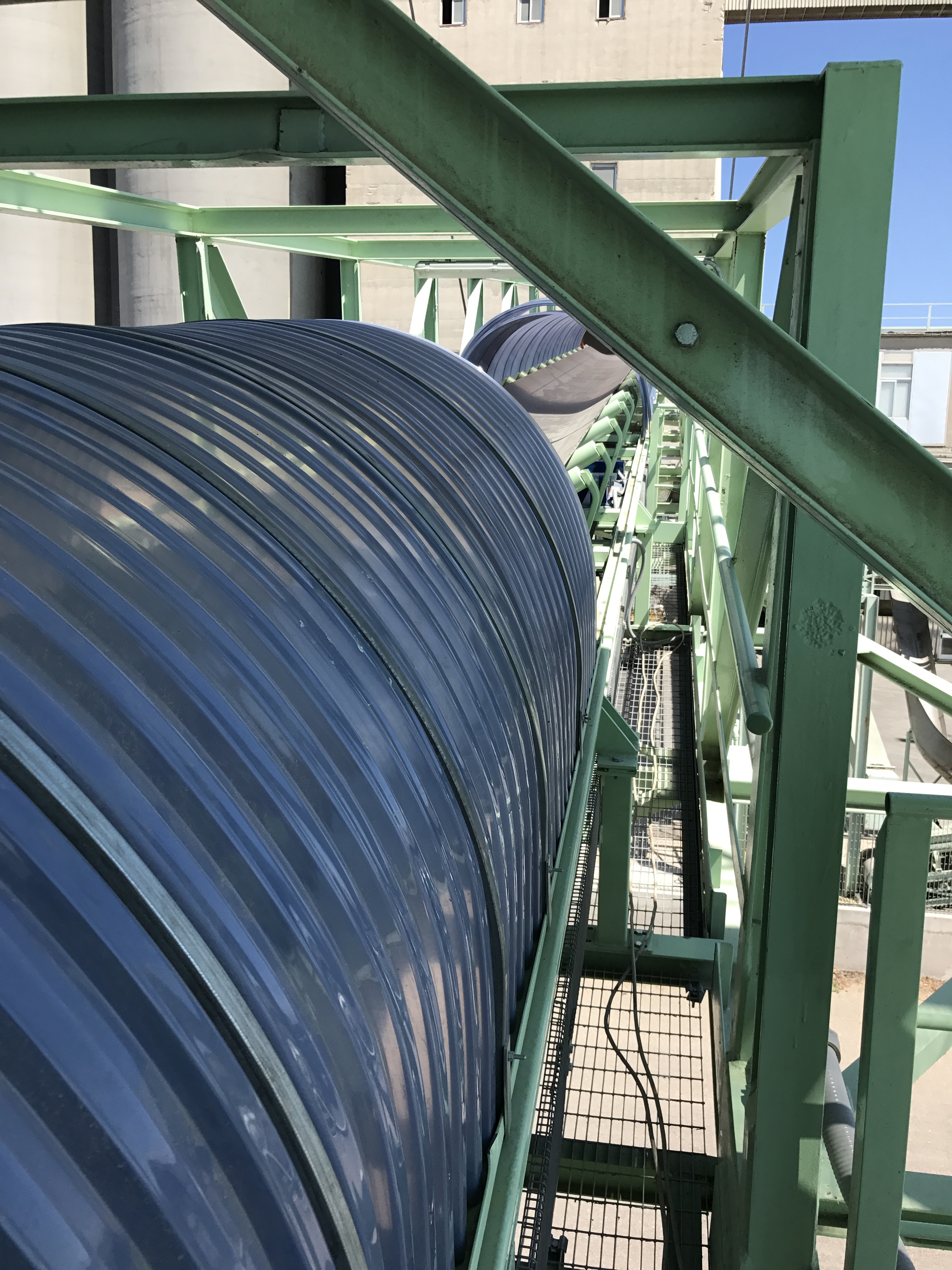 • Hopper unloading by means of a belt conveyor with weighing system. Conveyor length about 000 mm, capability 450 t/h (with a specific product weight of 0,75 t/mc).