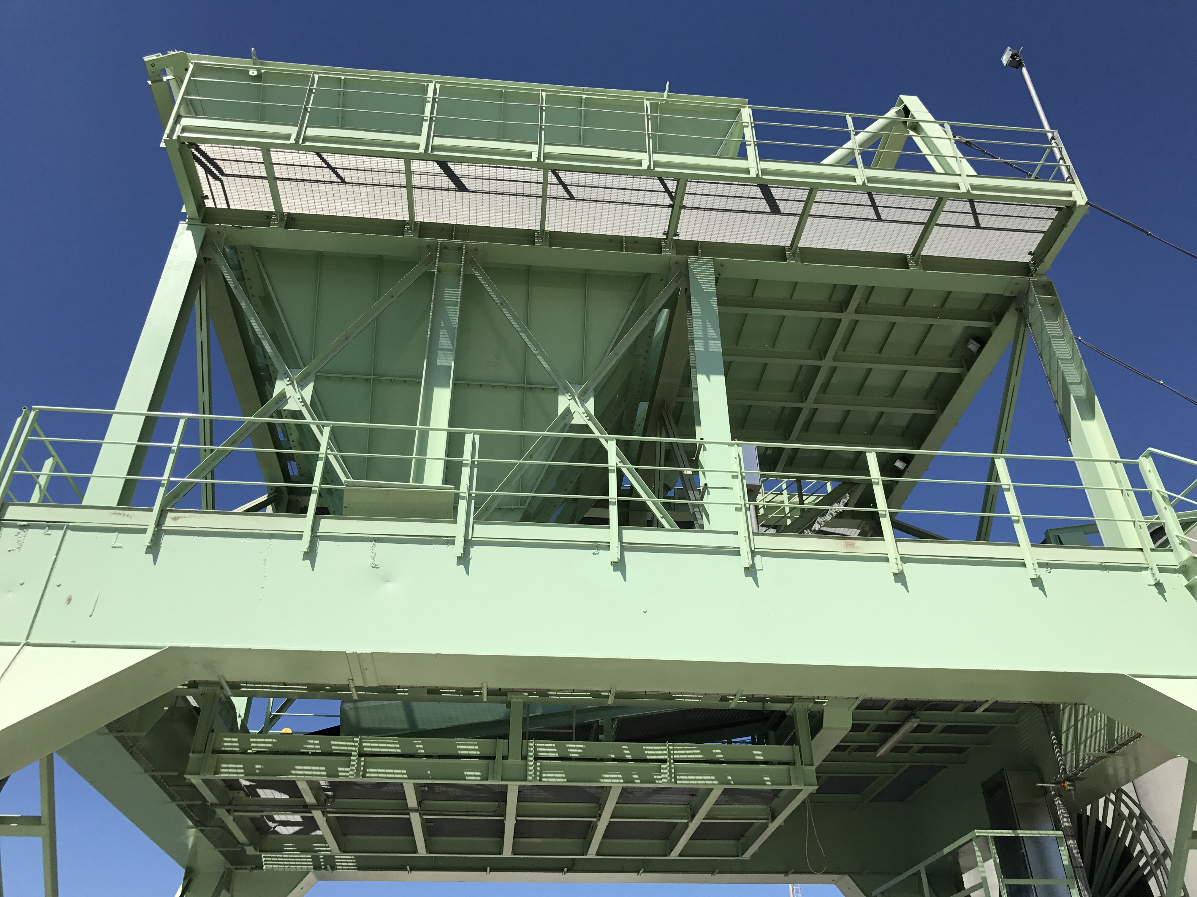 • Metal hopper support structure, seize 8.300 x 600 mm, height 5.900 mm, complete with stairs and 2 two inspection platforms.