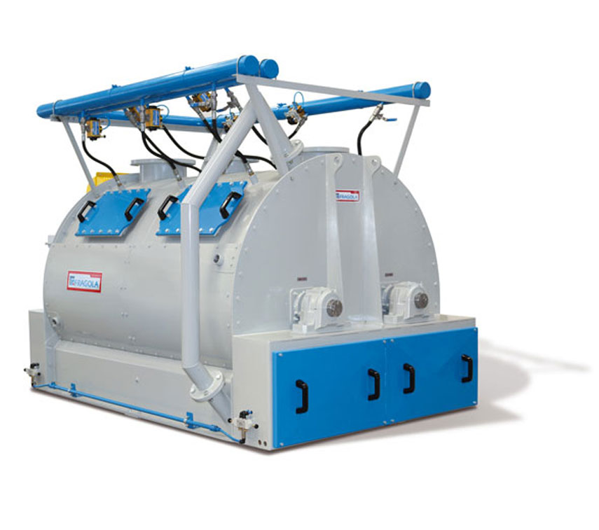 Максимально короткие циклы разгрузки смесителя обеспечиваются наличием разгрузочных люков на всю длину смесителя.